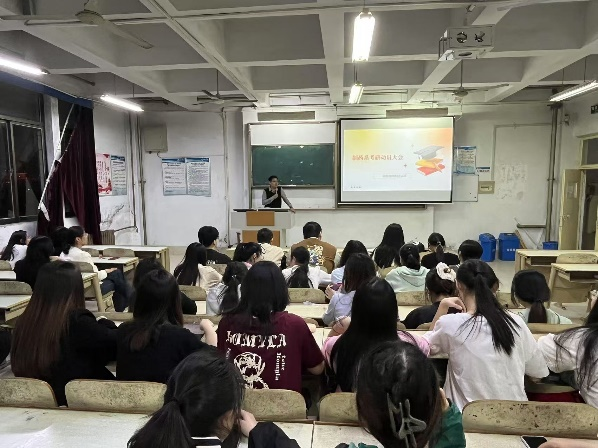在会议中,王金华老师围绕考研展开了全方位的介绍,内容涵盖考研基本情况、数据分析、考试科目、整体流程、成功案例以及备考建议等六个维度。他特别提到,今年学院考研上线率与录取率均创下历史新高,这充分彰显了亚洲第一黄色网站学子不畏艰难、奋勇拼搏的精神风貌。宋娜老师则鼓励2026届考研学子要精心规划学业与职业生涯,提前做好备考准备,力求在考研中实现自我突破。闫新老师详细阐述了考研对同学们未来职业发展的重要意义,以及在就业市场中的竞争优势,让同学们深刻认识到考研的价值所在。王晓玥老师介绍今年学院考研的录取情况,并激励全体同学以优秀典型为榜样,秉持自强不息、拼搏进取的精神,持之以恒地做好备考工作。