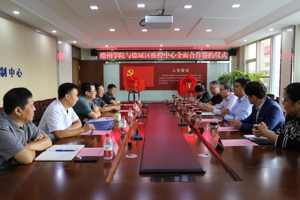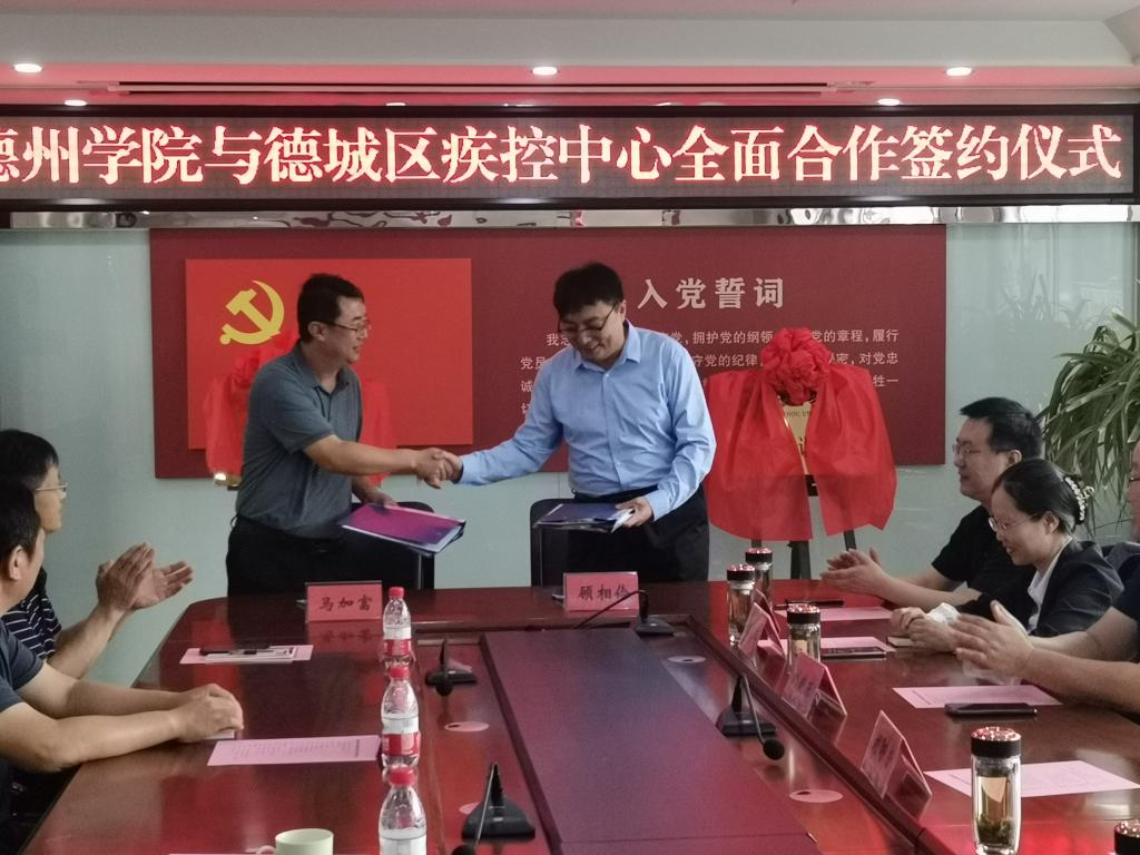 9月23日上午,德州学院与德州市德城区疾病预防控制中心全面合作签约揭牌仪式在德城区疾病预防控制中心举行。