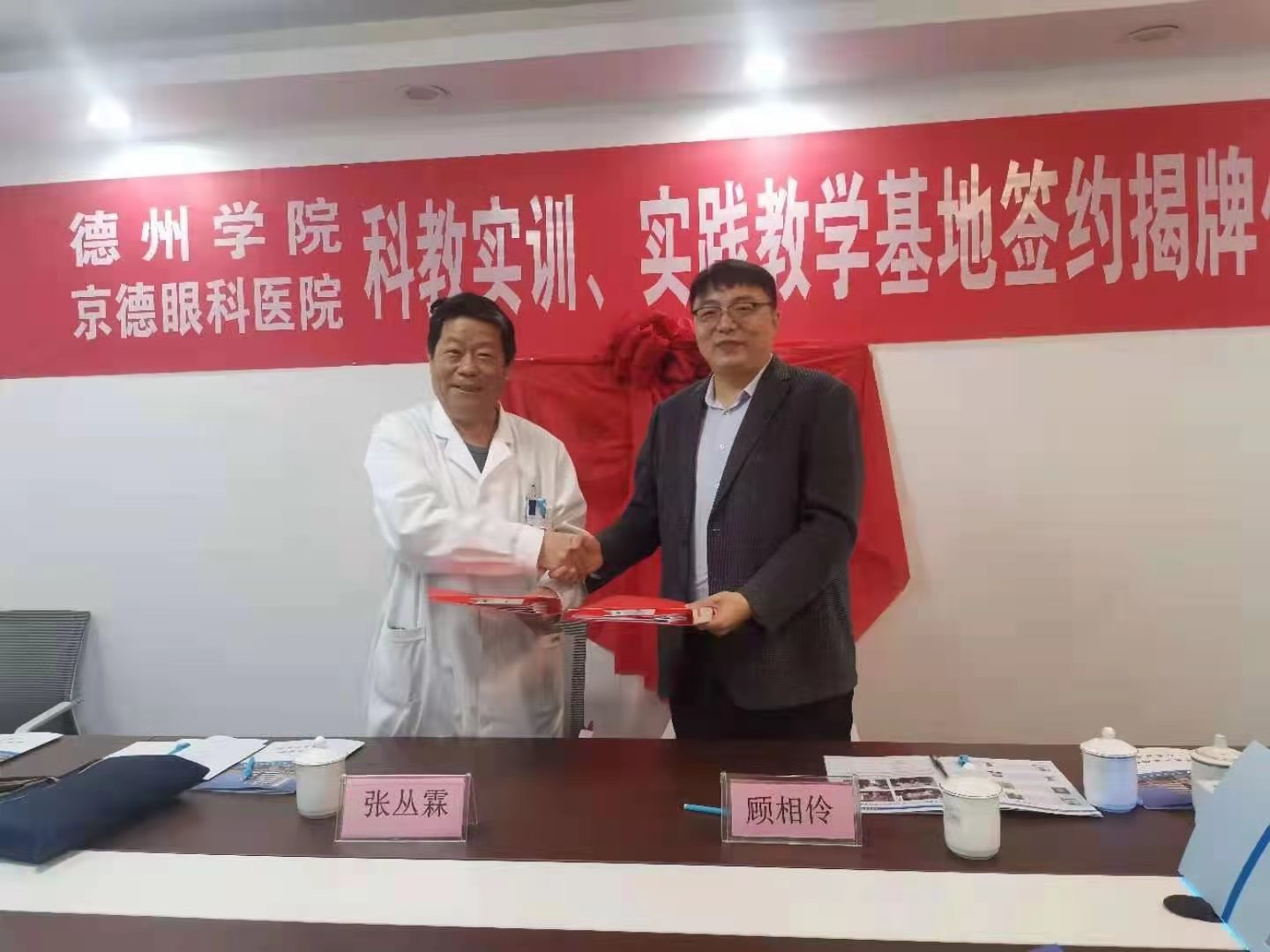4月21日上午,德州学院 京德眼科医院科学实训、实践教学基地签约揭牌仪式在京德眼科医院举行。