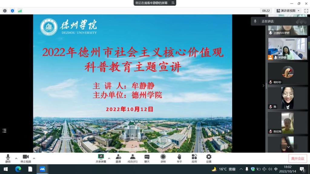 近日,为践行社会主义核心价值观,提升大学生综合素质,树立大学生服务社会的良好形象,助力德州争创全国文明城市,让更多人感受科普的魅力,德州学院医药与护理学院组织德州市2022年社会主义核心价值观科普教育主题宣讲活动,活动由医护实验中心牟静静主持,医药与护理学院400名大一新生参加了活动。