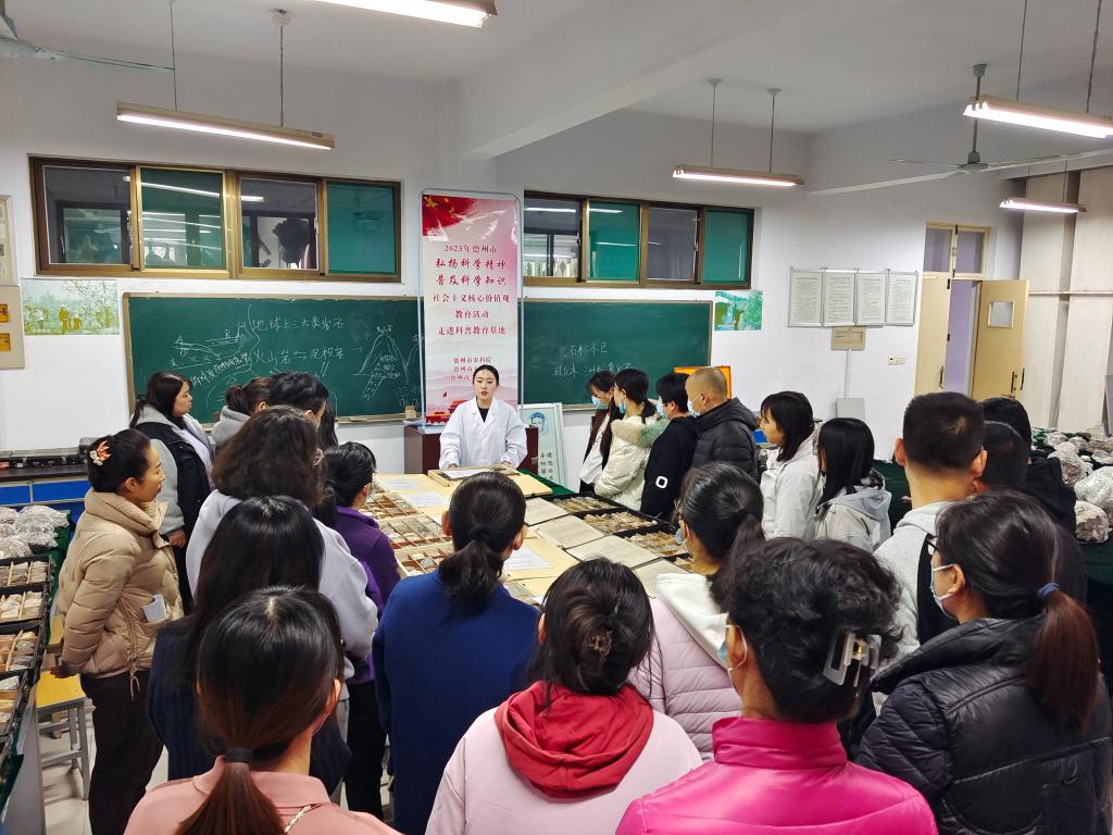 与会人员共同学习了习近平总书记在第十四届全国人民代表大会第一次会议上的重要讲话精神,深刻领会了坚持人民主体地位,坚持以人民为中心的发展思想,坚定了党员为人民谋幸福、为民族谋复兴的不变初心和使命担当。医药与护理学院基础医学部副主任刘勇做ABO血型讲解,并进行现场演示,各位党员积极参与,了解人类血型异常特征及其遗传方式,掌握人体血型(ABO型)检测方法。会后全体与会人员依次参观了人体生命奥妙馆、人体科学馆、动物标本实验室、植物昆虫标本室、岩石标本馆和中医药国粹展示馆等主题科技馆。