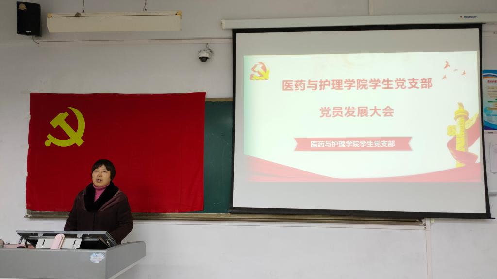 为了加强学院学生党支部建设,保障学生党支部充满活力。2020年12月15日下午,医药与护理学院学生党支部党员纳新大会在体育楼503教室举行。医药与护理学院党总支副书记孟爱青、组织员王永顺出席,学生党支部全体党员、本次纳新的党员发展对象及入党介绍人参加本次会议。