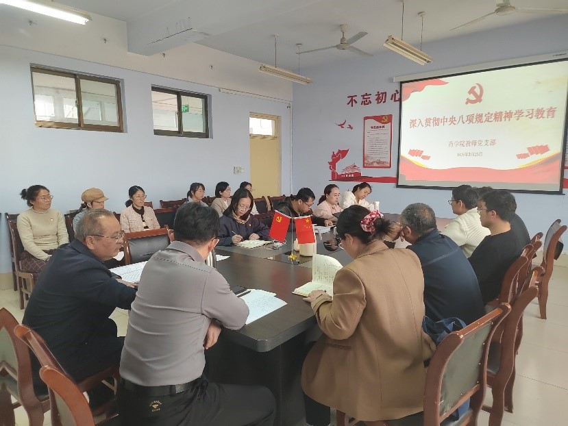 会上,全文学习了《中共德州学院委员会办公室关于在全校开展深入贯彻中央八项规定精神学习教育的通知》。党中央决定自2025年全国两会后至7月在全党开展深入贯彻中央八项规定精神学习教育,习近平总书记高度重视、亲自谋划并作出重要指示,为开展深入贯彻中央八项规定精神学习教育指明了方向。会上要求,一是全体党员要提高政治站位。聚焦深入贯彻中央八项规定精神学习教育学习,锤炼党性、增强思想觉悟,为学院事业发展开创新局面。二是全体党员要深刻认识和把握深入贯彻中央八项规定精神学习教育的重要意义和目标要求,切实增强深入贯彻中央八项规定精神学习教育的思想自觉和行动自觉,领导班子要发挥示范引领作用。三是一体化推进干部作风、教师教风和学生学风,确保学习教育深入师生、深入基层、深入人心,检视在贯彻中央八项规定及其实施细则精神过程中存在的问题,通过加强警示教育等措施推动问题整改落实到位。