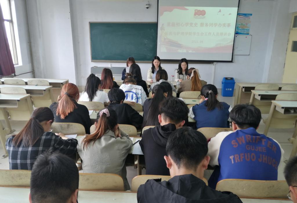 2021年4月20日下午,医药与护理学院学生会于体育楼503教室开展了“重温初心学党史 服务同学办实事”主题培训会,团总支书记主持,辅导员及全体学生会工作人员参加。