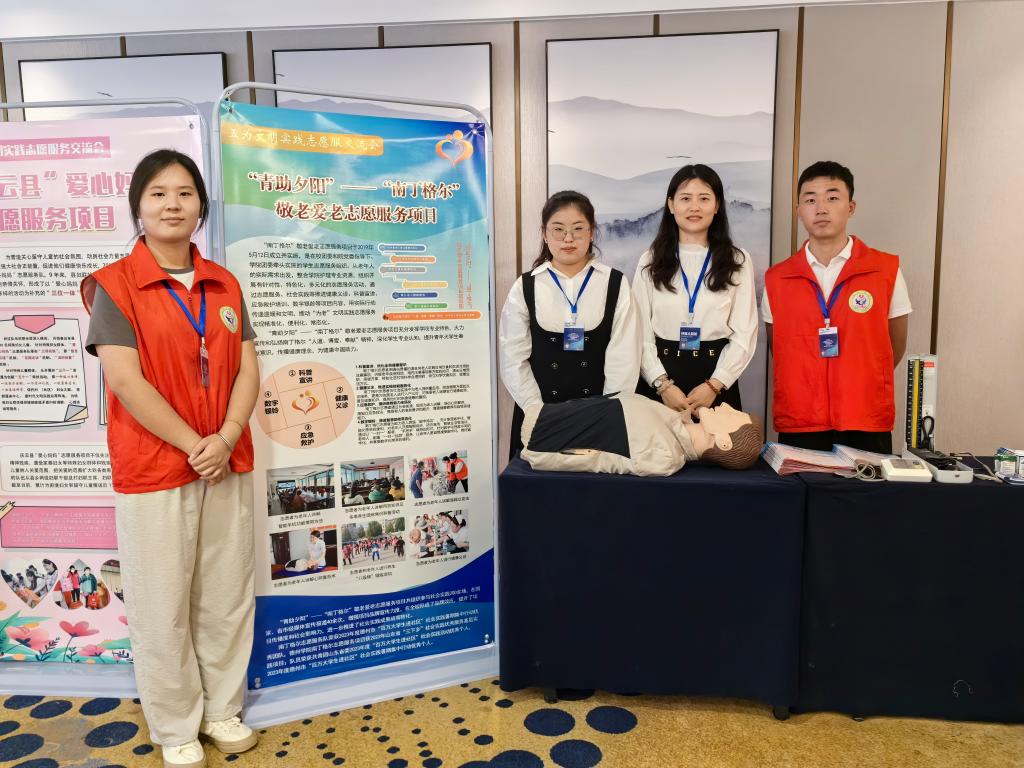 本次大赛以“青春志愿行·奋进新征程”为主题,依托项目大赛的形式开展。经前期的项目申报及初选,62个项目进入终选,学校共有6个项目作品入围终评。其中我院青助夕阳——“南丁格尔”敬老爱老志愿服务项目通过“路演+答辩”的方式全面展示了项目的成效、社会影响和创新性,荣获优秀组织奖。该项目自2019年实施以来,在校团委和院党委指导下,始终坚持从老年人实际需求出发,结合专业优势开展有针对性、特色化、多元化志愿服务活动,志愿者用实际行动践行“奉献、友爱、互助、进步”的志愿服务精神。赛后,项目团队志愿者进行布展讲解,充分展现了我院志愿者对敬老爱老这一中华民族优秀传统美德的传承与弘扬。