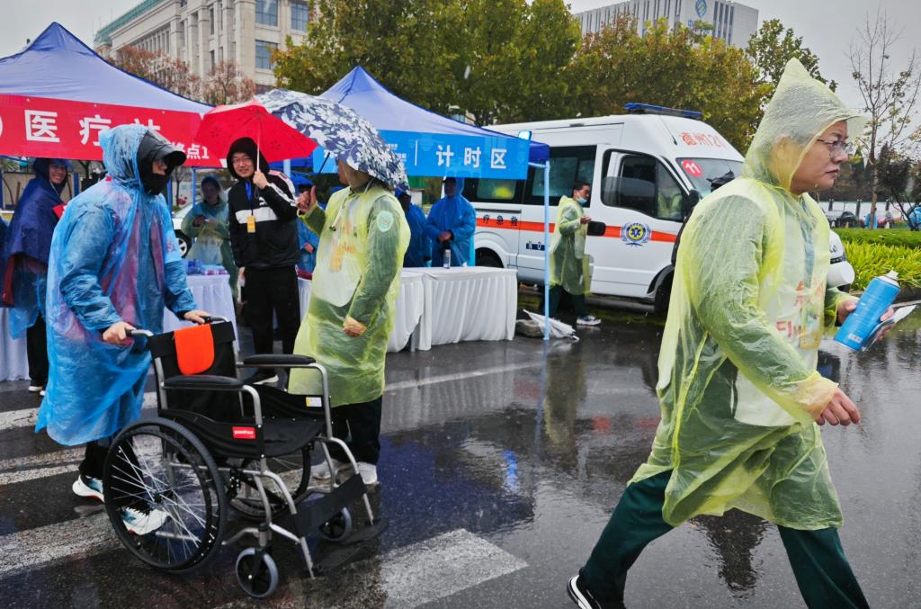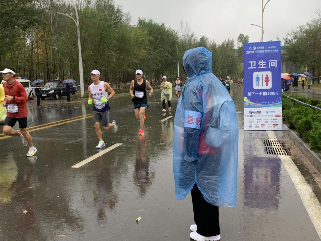 为保证提前到岗服务,志愿者们凌晨四点就开始准备,身穿志愿者服、佩戴志愿者牌和红十字袖标,五点集合乘坐志愿者接送专车前往运河马拉松比赛地点,在半程和迷你赛道每隔一百米就有一名医药与护理学院医疗志愿者。虽然天气阴冷有雨,距离比赛还有三个小时,但是志愿者们迅速进入工作状态,与工作人员一起为赛事进行准备工作,疏导场地观众、媒体及参赛者,指引他们在规定的道路走动。随着比赛开始,医疗志愿者以饱满的精神状态投入到志愿服务工作当中,严密观察,全赛程、零距离守护,一路保障选手们科学跑、安全跑,让跑者在这条美丽的赛道上没有后顾之忧。赛事期间,医疗志愿者现场迅速处理肌肉拉伤,膝、踝关节疼痛,皮肤擦伤等运动员出现的损伤情况。如果发现有身体突发状况需要救援的运动员,志愿者们会及时向医疗人员报备,同时第一时间进行现场急救,如心肺复苏、AED体外除颤等。医疗志愿者们以专业为依托,以高效率、高质量、高水平的服务为标准,圆满完成了各项工作任务。