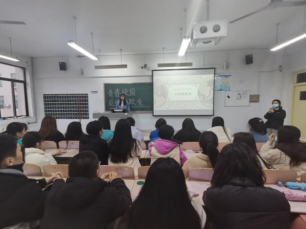 为深入开展“我为群众办实事”活动要求,切实提高学生预防校园暴力的意识和能力,保障学生的身心健康发展,构建阳光和谐的校园环境。医药与护理学院于11月20日下午在11号楼305教室开展“反校园欺凌”宣讲活动。