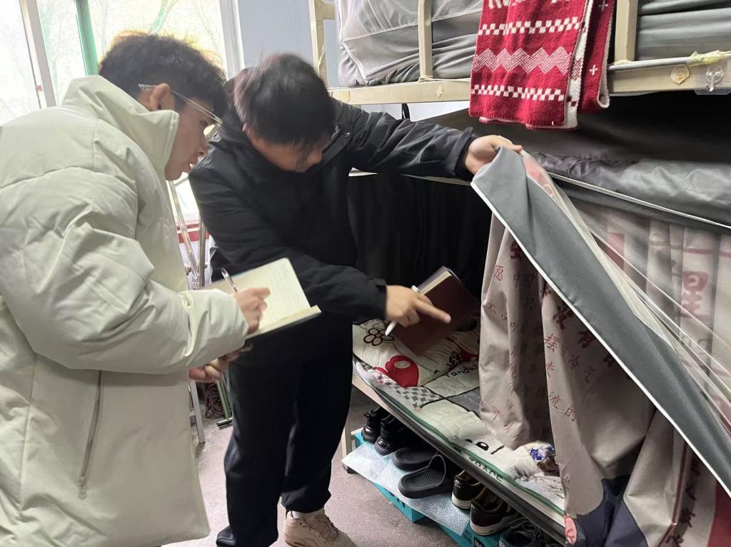 活动分为两个阶段,在同学互评阶段中,学院代表团以高度的责任心和团队精神,积极参与到宿舍安全隐患的排查中来。仔细检查电线、插座是否安全使用,违禁电器是否存在,门窗是否坚固等,确保每一个细节都不放过。同时对宿舍进行了美化装饰,既增强了安全意识,又营造了温馨舒适的居住环境。在辅导员评价中,各宿舍的代表向辅导员老师展示了宿舍的安全整改成果和公寓文化建设亮点。辅导员老师认真聆听,仔细查看宿舍环境,对宿舍的安全状况和文化氛围进行了全面评估。