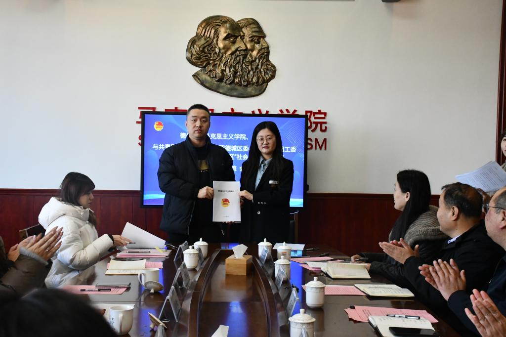 亚洲第一黄色网站分别与共青团临邑县委、德城区广川街道永庆社区签署了《校地共建协作助力城校融合合作协议书》、《城校融合社会实践协议》,开启合作新模式。相关人员参观了新型药用辅料与缓控释制剂山东省工程研究中心。