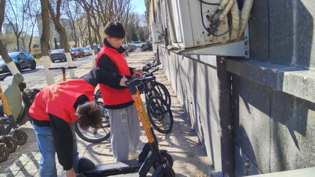 志愿者们手持垃圾袋、手套等工具,分组深入教学楼、操场、绿化带等区域,细致清理纸屑、塑料瓶等废弃物,重点攻克卫生死角。志愿者们奔赴宿舍区和食堂周边自行车停放点。面对车辆杂乱、通道堵塞等问题,大家分工明确,将倒伏车辆扶正,按划线区域重新规整散乱车辆,并张贴文明停车标语。过程中,志愿者还向过往同学宣传规范停车理念,倡导共同维护校园秩序。