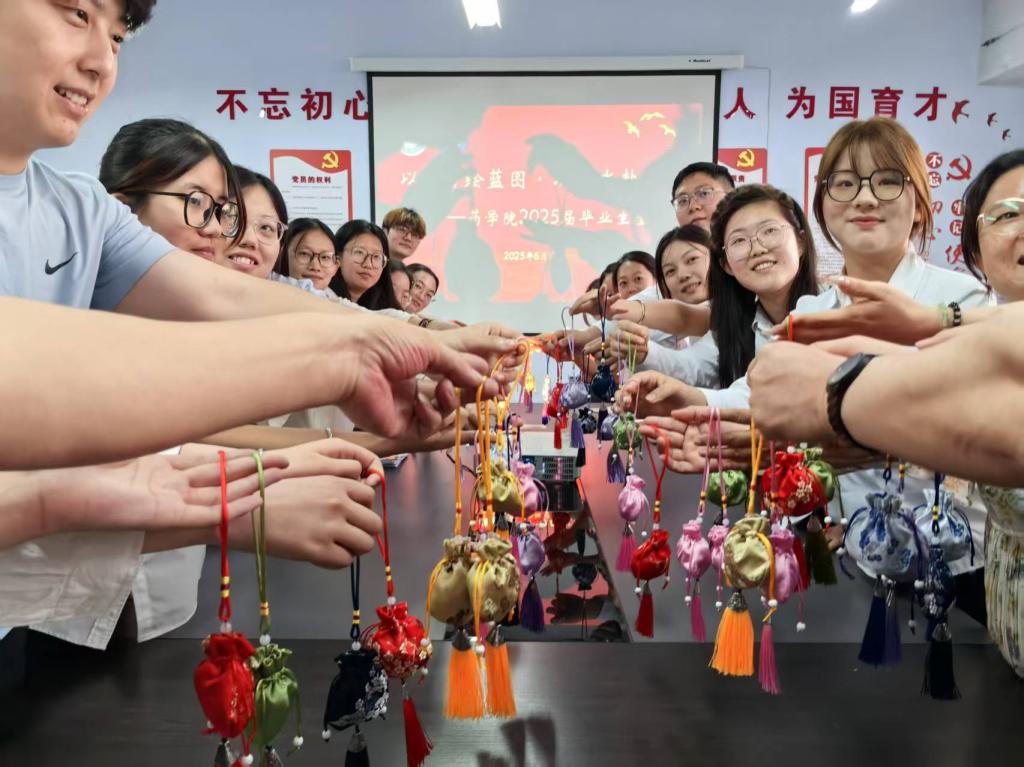 座谈会在温馨感动的氛围中接近尾声。学院特别为每位毕业生代表准备了一份由师生精心配制的独具药学特色的毕业礼物——中草药香囊,寄托学院对学子们“平安顺遂、前程似锦”的美好祝愿。