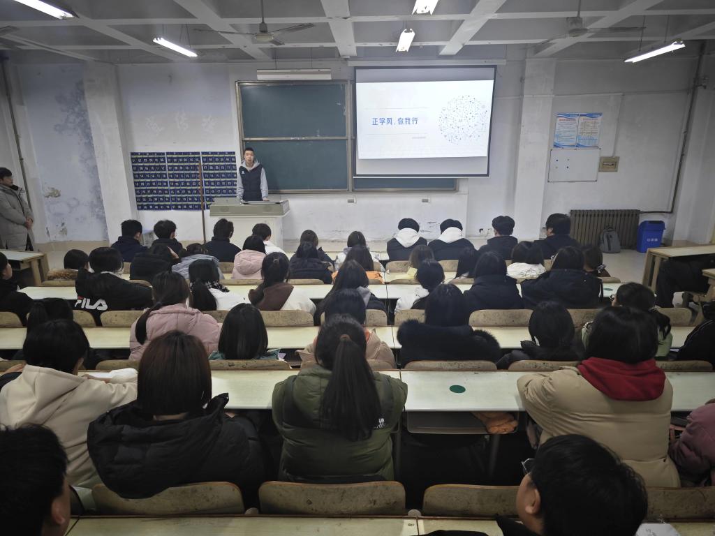 为进一步加强学院学风建设,强化学风管理,规范学习纪律,促进学生的健康成长和综合素质的全面提高,结合学院实际,医药与护理学院学生会12月18日在体育楼401召开以“学风关于你我他,学风建设靠大家”为主题的宣讲活动。