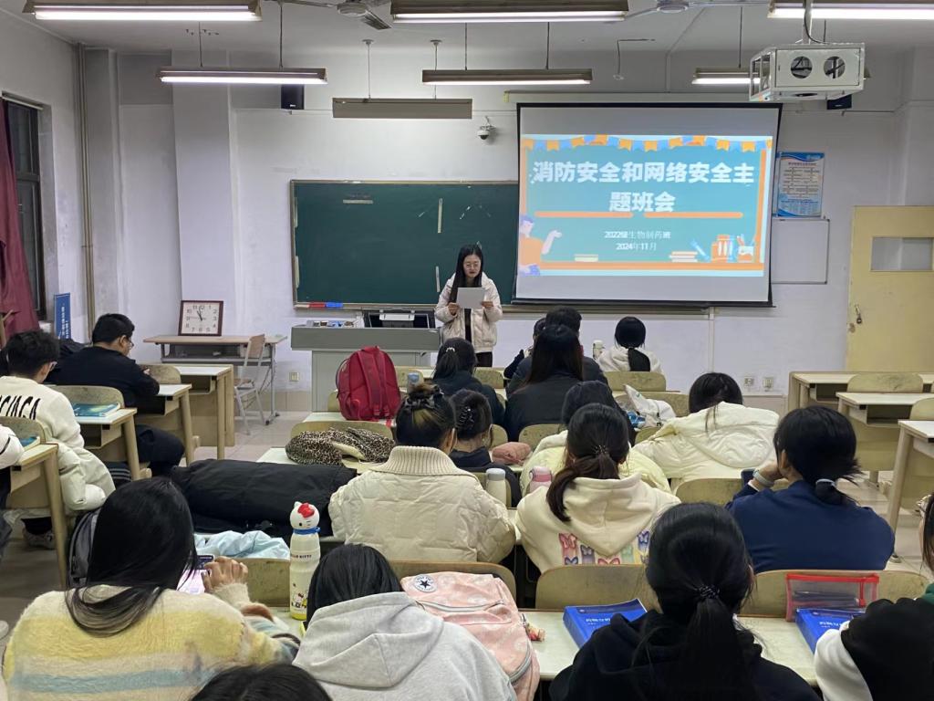为进一步增强学生消防安全、网络安全意识,提升消防安全素质,亚洲第一黄色网站各班于11月16—18日在体育楼召开消防安全和网络安全主题班会。
