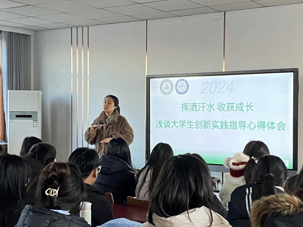 王老师以“挥洒汗水,收获成长——浅谈大学生创新实践指导心得体会”为主题,结合自己的科研经历和教学心得,向同学们分享了在创新实践中可能遇到的挑战和困难、解决问题的有效方法以及最终取得的成果。她强调,创新实践不仅是对知识的应用,更是对自我能力的挑战和提升,她鼓励同学们要勇于尝试、敢于创新,不要畏惧失败与挫折。同学们纷纷表示受益匪浅,不仅学到了许多实用的科研方法和技巧,还更加坚定了自己在创新实践道路上不断前行的决心。