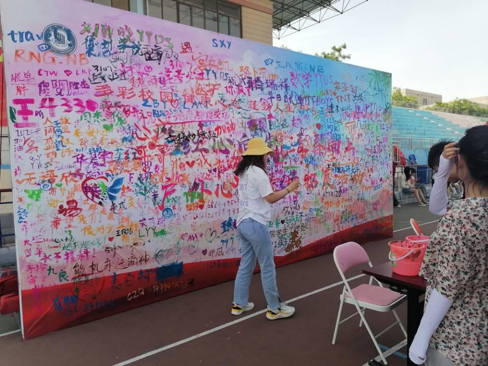 那天金灿灿的阳光洒满操场,每个人的脸上都洋溢着笑容,在这张语录墙上写满了大家想说的话,每一句话的背后都有一个故事,这些话、这些故事把我们串联在一起,每个人都是被深爱、被牵挂与眷恋的个体。