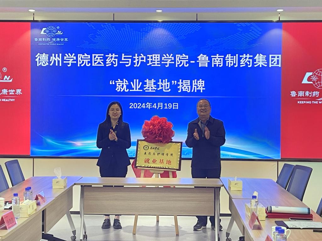 考察团一行先后参观了启达力健康文化馆、时代楷模赵志全同志纪念馆、鲁南制药集团展览馆、党建馆和首荟健康管理中心。随后双方举行校企合作座谈。冯立顺首先表达了对鲁南制药企业文化、发展理念及公司产品的高度认可,随后介绍了德州学院医药与护理学院的发展历史、人才结构、师生规模及科研力量。他表示,希望通过此次行程能够建立更深层次的合作关系,期待校企双方可以拓宽交流渠道,丰富校企合作方式。集团人力资本中心主任宋祥云介绍了鲁南制药的发展情况、优秀校企合作案例及未来人才需求等情况。她强调,鲁南制药的最高经营目标为“培养和造就人才”,未来,希望双方的合作更上一个台阶,实现校企双方互惠共赢。交流结束后,宋祥云和冯立顺为“德州学院医药与护理学院——鲁南制药集团就业基地”揭牌。随后考察团一行继续参观了新时代展厅、厂区及现代中药车间。