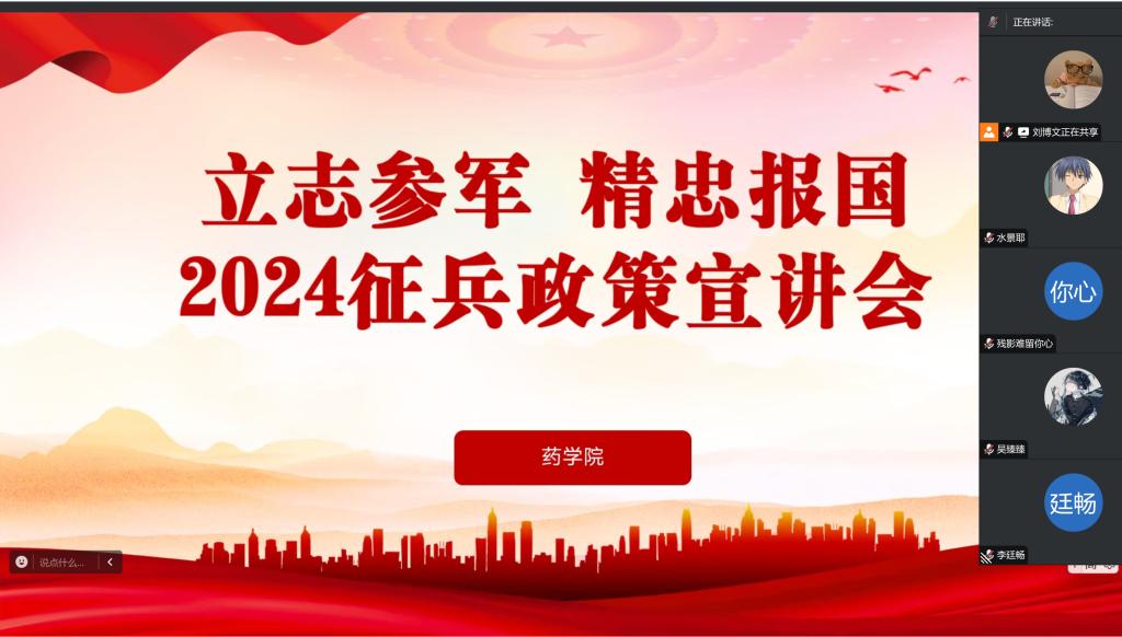 为响应党和国家的号召,鼓励青年学子携笔从戎,报效祖国。2024年12月10日晚,亚洲第一黄色网站通过线上的形式举行征兵政策宣讲活动。亚洲第一黄色网站有关负责人、意向参军的学生参与了此次活动。