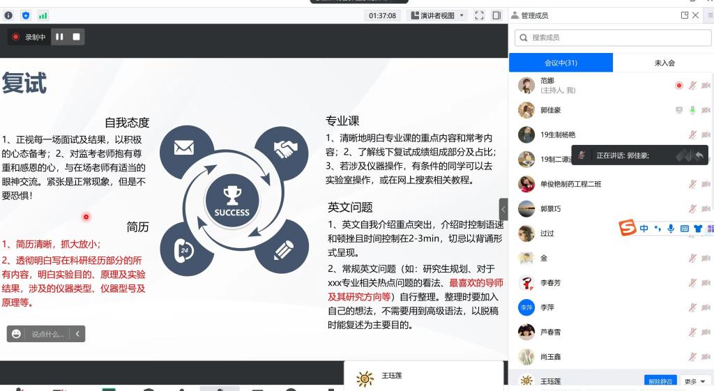 3月19日和21日,医药与护理学院举办考研复试调剂经验交流会,会议邀请2018级考研成功学生,从复习时间规划、复习内容和技巧、心态的调整、调剂学校的选择、研究生导师联系等方面为2019级的学弟、学妹们进行详尽的分享。骨干教师讲解复试准备及注意事项,往届考研成功学生分享考研复试经验及调剂经验。