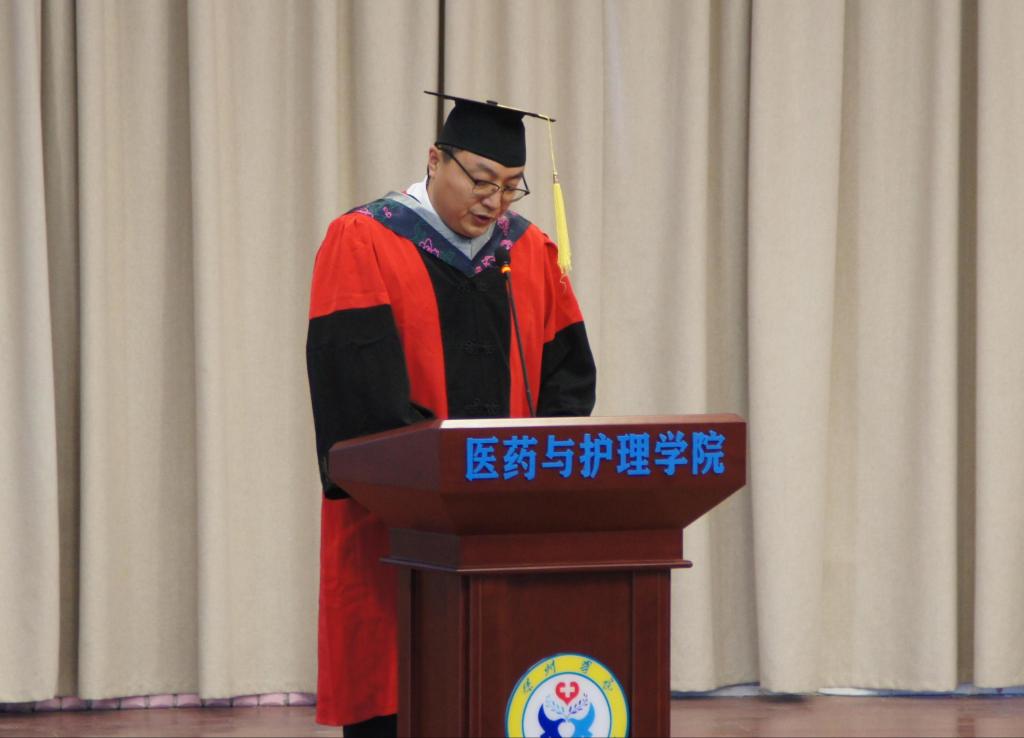 顾相伶说,在将来,成功时鲜花簇拥的背后,请不要忘记母校和我们引以为豪的眼神;失意时孤单无助的阴影下,请不要忘记母校和我们信任期盼的目光。期望同学们满怀信心地奔赴人生新的旅程,承担起更加繁重的使命和责任,继续发扬“崇德启智、励志博学”的校训,续写医药与护理学院辉煌的篇章,和母校同成长,与母校共辉煌。