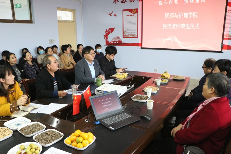 10月19日下午,医药与护理学院在体育楼509会议室举行张艳老师荣退仪式。仪式由医药与护理学院党委书记冯立顺主持,班子成员、全体教师、离退休教师代表出席仪式。
