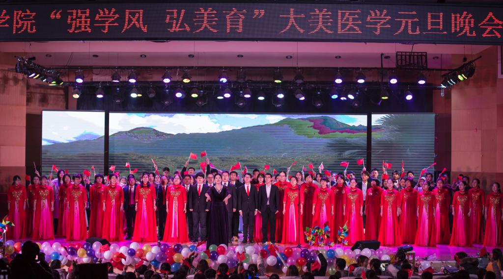 扬帆医学魂,求索中国梦。此次晚会展现出医药与护理学院拼搏进取的风采,彰显出医学学子严于律己、发奋成才的青春昂扬的精神和以实力争取优异成绩、以诚信展现良好学风的决心。全选师生将以更加饱满的热情和姿态迎接新年的挑战,再创佳绩。
