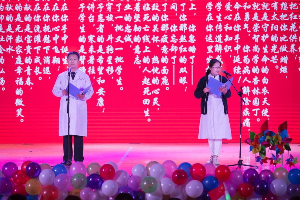 晚会以活力四射的街舞拉开帷幕。晚会中,美好动听的歌曲让同学们为之振奋,小品、相声给人前进的动力,学院老师合作朗诵的原创诗歌《托起生命的太阳》,让大家感受到教师对于医学教育事业的热情。优美动人的舞蹈、活力奔放的走秀让我们感受到青春活力。最后,晚会在师生合唱的《歌唱祖国》中落下帷幕。