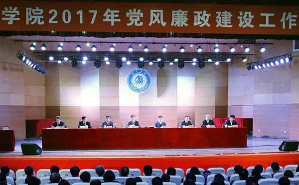 3月17日,学校2017年党风廉政建设工作会议在音乐厅召开。校党委书记刘文烈,党委副书记、校长冯健,党委副书记、纪委书记展德明,党委委员、副校长巩建闽、孙海滨、王金利、张明征,校长助理李永平出席。会议由冯健主持。