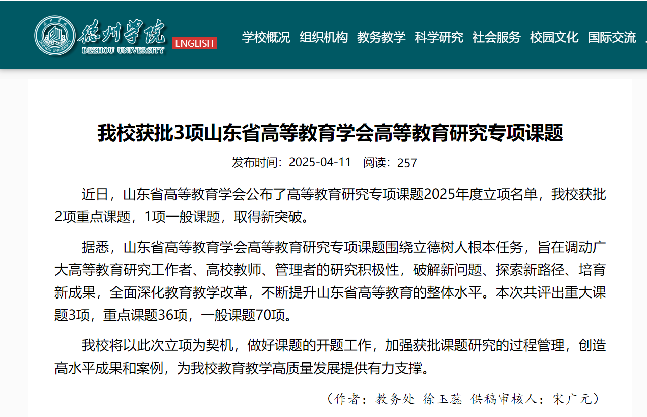 此次项目是根据《山东省高等教育学会高等教育研究专项课题管理办法》和《关于开展山东省高等教育学会高等教育研究专项课题立项2025年申报工作的通知》要求,山东省高等教育学会组织了山东省高等教育学会高等教育研究专项课题立项2025年申报评审工作。经专家评审,确定重大课题3项,重点课题36项,一般课题70项。