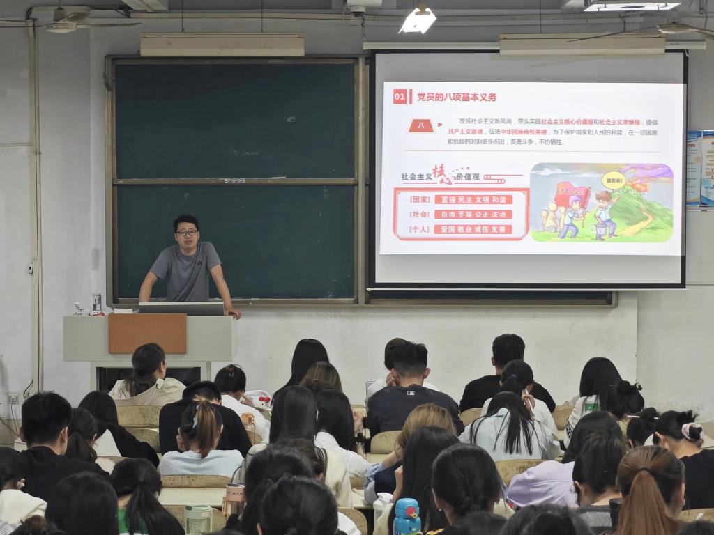 4月18日晚,医药与护理学院第36期入党积极分子培训班在体育楼414持续开讲,医药与护理学院第一教师党支部书记张中玉以“义务与权利 心中要牢记”为主题,为入党积极分子上了一堂生动的党课。