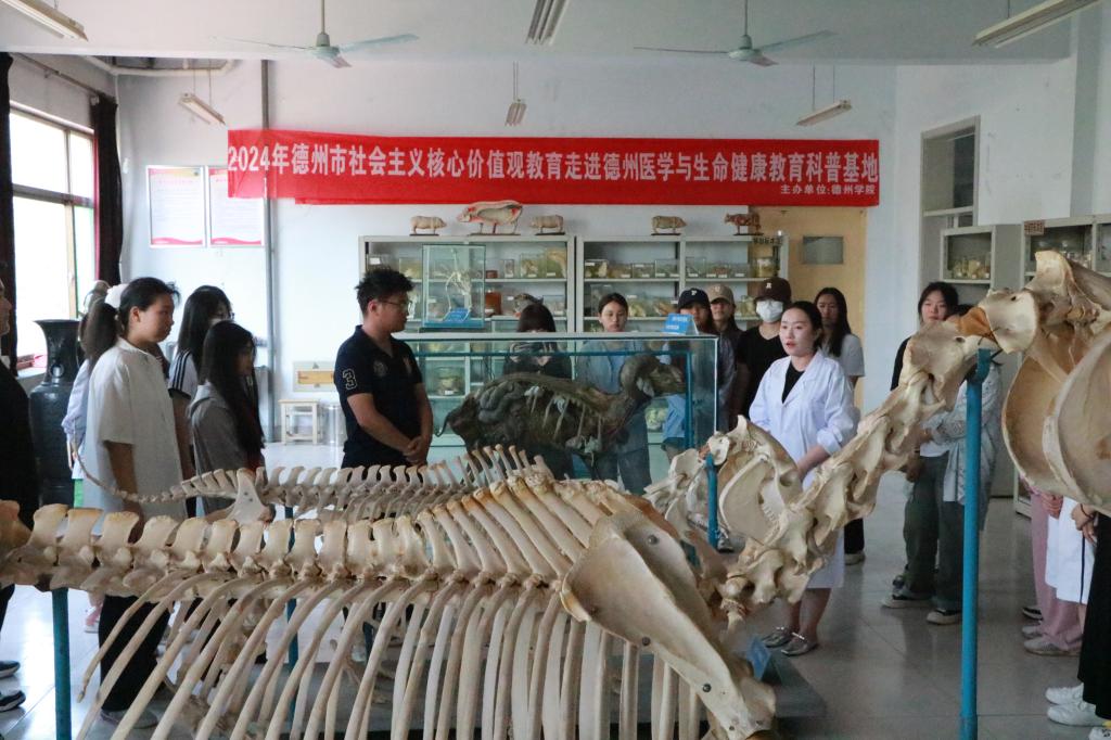 为积极培育和践行社会主义核心价值观,传播科学思想和弘扬科学精神,培养创新精神和实践能力,5月18日下午,医药与护理学院第一学生党支部承办德州市2024年社会主义核心价值观科普教育走进德州医学与生命健康教育科普基地活动,学院2023级和2022级学生代表一百余人参加,党员志愿者担任讲解员。