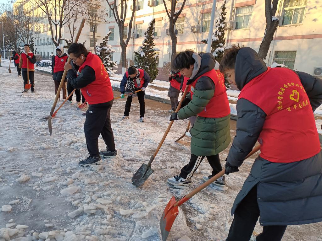 一场漫天飞舞的大雪将校园装扮的银装素裹,为及时清除冰雪,确保师生雪后在校园内安全出行,保证校园正常的学习、生活秩序,12月16日下午,医药与护理学院学生党员积极参加校园清除冰雪活动。